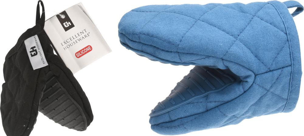 Chňapka, 2 farby (modrá, čierna), silikónová úchytná časť s 25% bavlnou, 40% polyester, 35% silikón, váha rukavice 70g, silikónová časť 18x11cm, odolná teplotám do 250°C