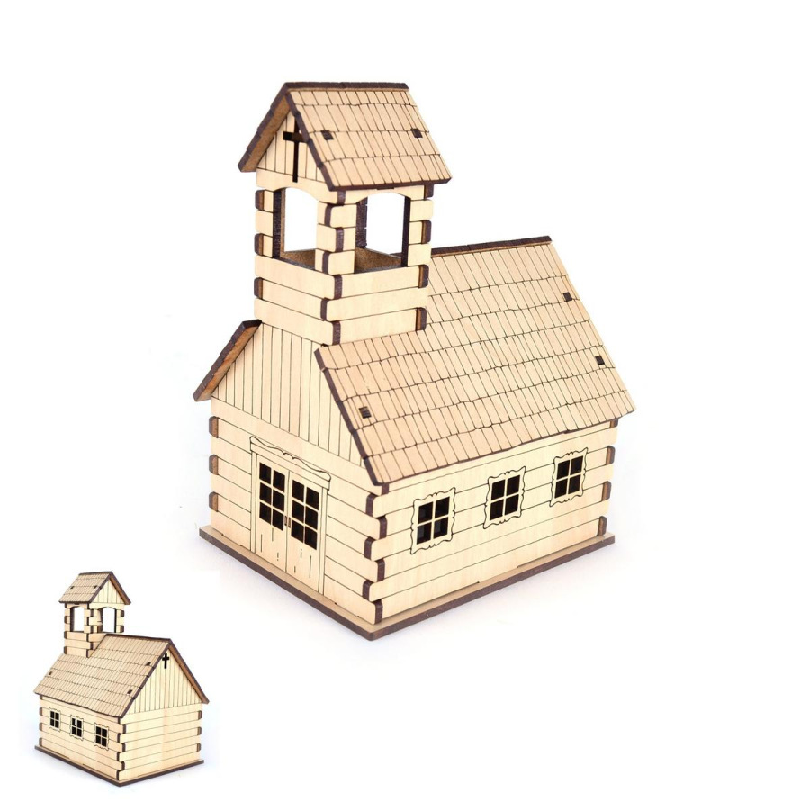 dekorácia, kostol, materiál drevo, rozmer 7x9 cm, výška 12 cm, možnosť vložiť LED čajovú sviečku do vnútra