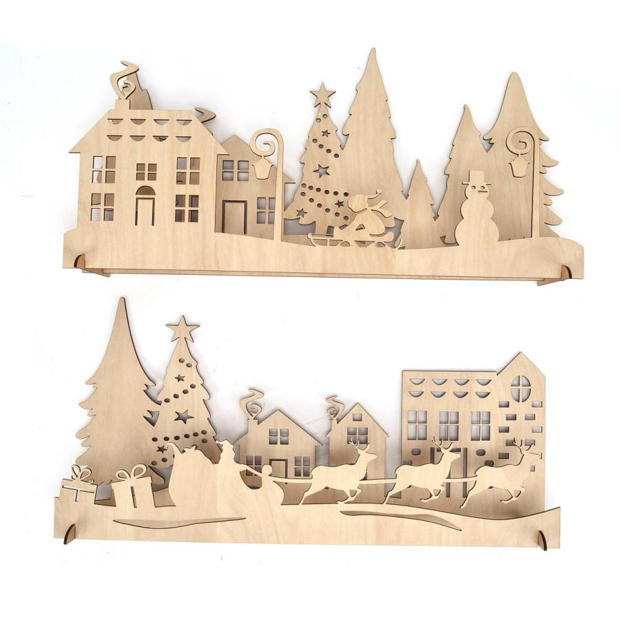 Dekorácia krajinka/dedinka drevo mix dekorov
