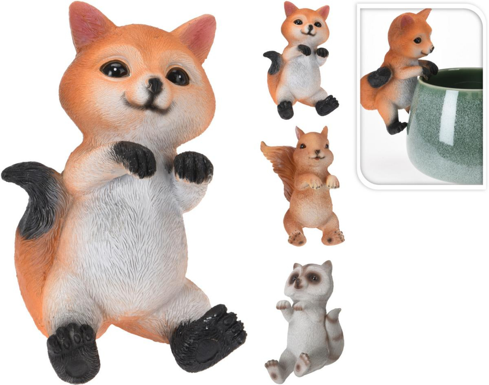 dekorácia na kvetináč, polystone, rozmery 15x5,5x7,3 cm, mix - veverička, líška, medvedík čistotný