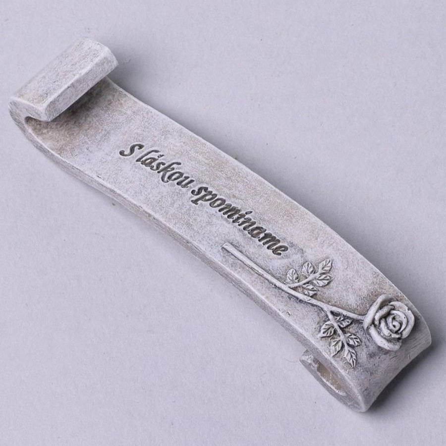 náhrobná dekorácia, nápis S láskou spomíname, materiál polyrezín, rozmer 3x2,5x10 cm