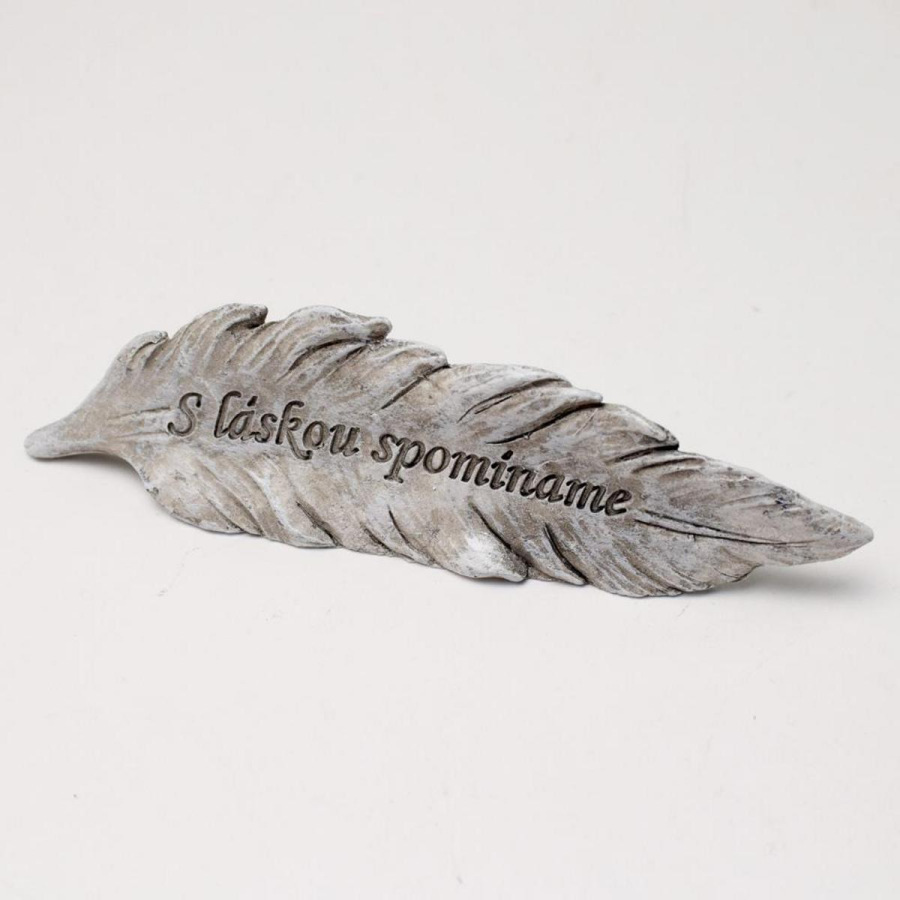 náhrobná dekorácia, pierko, nápis S láskou spomíname, materiál polyrezín, rozmer 14x2,5x3,5 cm