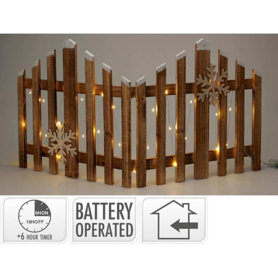 dekorácia plot, 30 LED, materiál drevo, rozmery 76x2x38 cm, s časovačom 6 hodín zapnuté, 18 hodín vypnuté, 2xAA batérie ( nie sú zahrnuté), na vnútorné použitie
