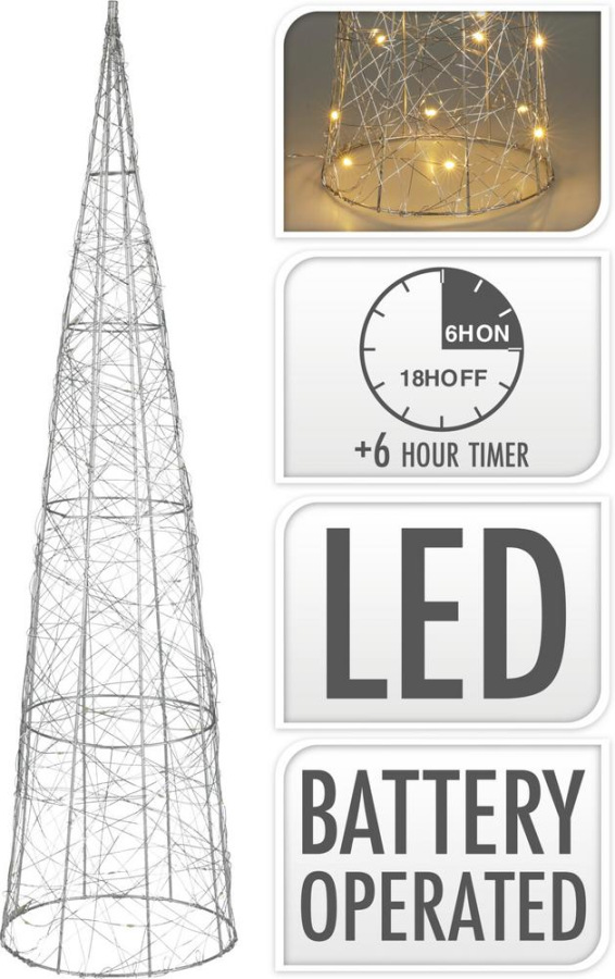 dekorácia stromček LED, rozmery: 20X20X80CM, materiál kov, 40X mikro LED, na batérie 3X AA (nezahrnuté)