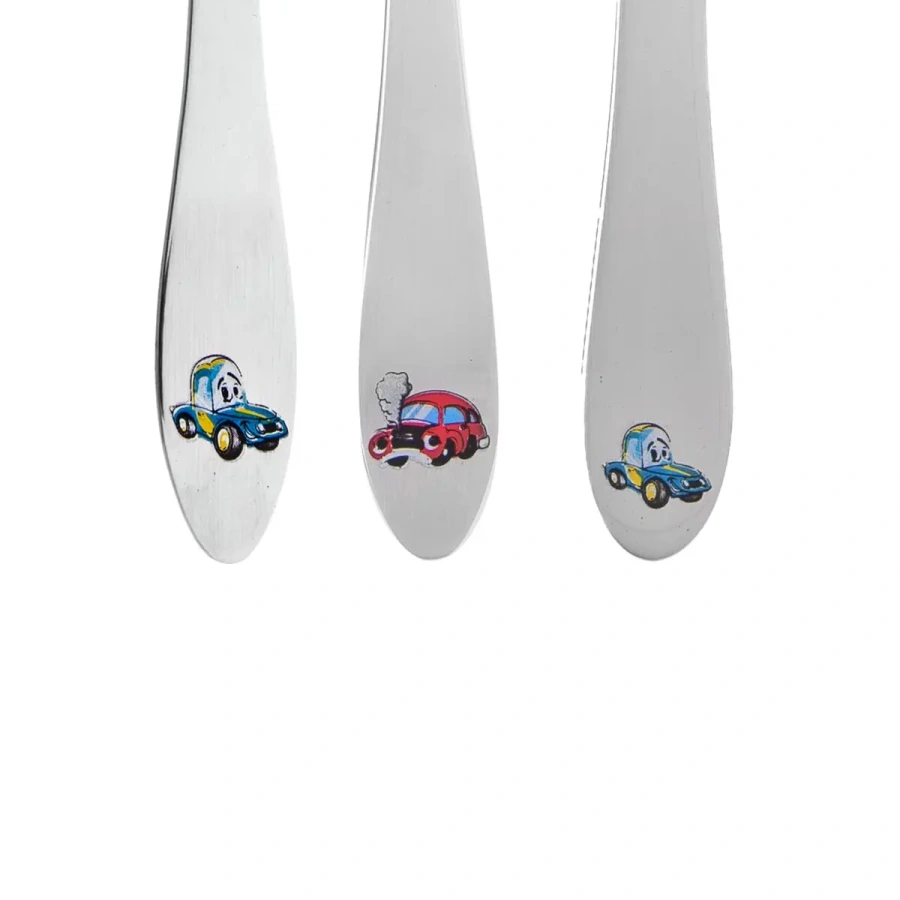 Detský príbor s farebným motívom AUTO premení každé jedlo na zábavnú a veselú chvíľku. Set obsahuje 3 diely – lyžicu, vidličku a nôž, všetky vyrobené z kvalitného nerezu, ktorý je mimoriadne hygienický, bezpečný, odolný a vhodný na každodenné používanie.