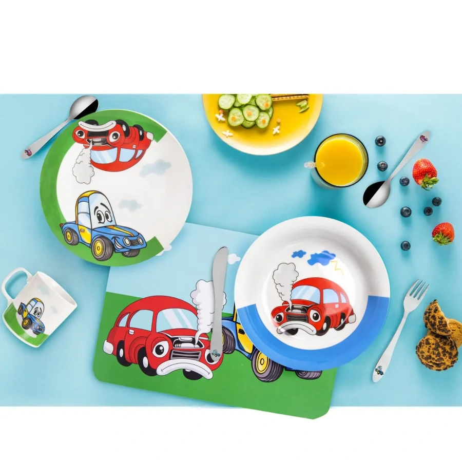 🚗 Veselý detský príbor s farebným motívom AUTO – ideálny pre malých stravníkov