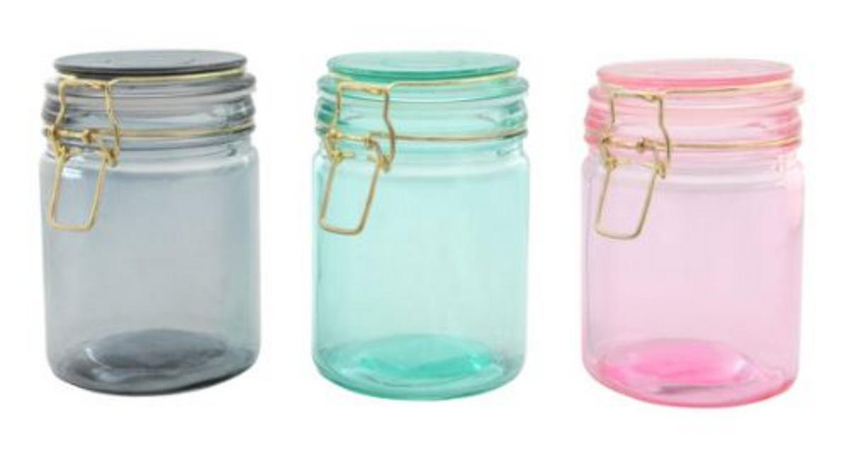 Sklenená dóza s patentným uzáverom, objem 0,75 l. Mix farieb.