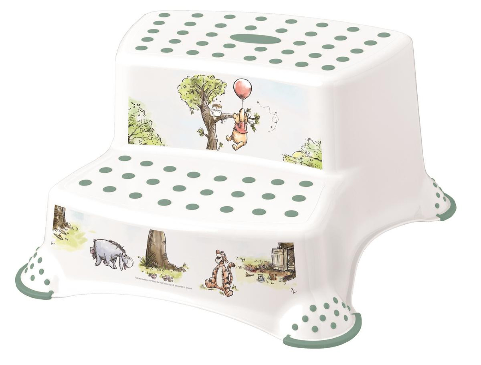 plastový detský dvojschodík, protišmykový, rozmer 40x37x21 cm, farba biela, motív WINNIE, max. zaťaženie do 100kg, praktický, ľahký a bezpečný