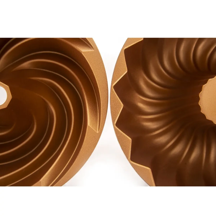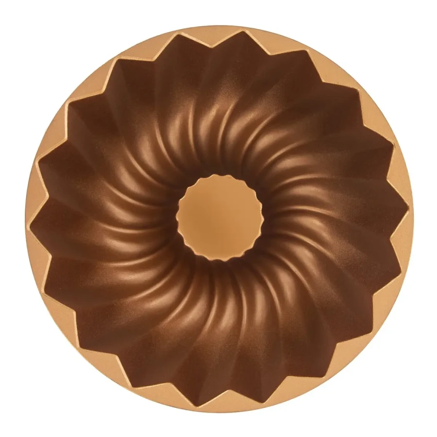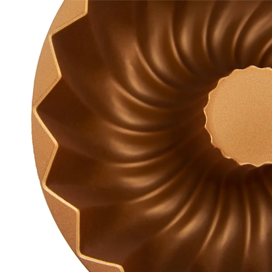Táto forma na bábovku kombinuje praktickosť a eleganciu. Je vyrobená z hliníka s dvojitým nepriľnavým povrchom PFLUON, ktorý zabezpečuje, že sa cesto neprilepí a bábovka sa ľahko vyklopí. Elegantný medený efekt dodáva forme luxusný vzhľad a zároveň z nej robí krásny doplnok každej kuchyne.