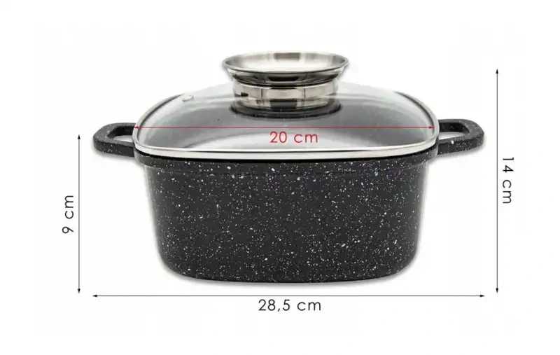 Hliníkový hranatý hrniec 2,3 l s keramicko-mramorovým povrchom + pokrievka (20×20×9 cm)