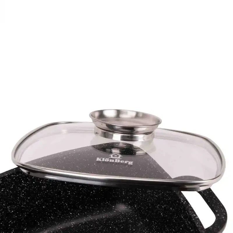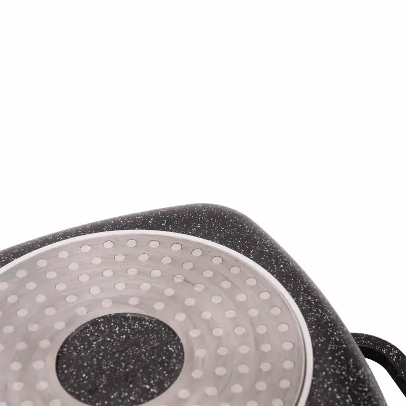 Hranatý hliníkový hrniec 4,4 l s keramicko-mramorovaným povrchom je skvelou voľbou pre rodiny, ktoré chcú zdravé varenie, nepriľnavý povrch, vysokú odolnosť a univerzálne použitie na všetkých typoch sporákov.