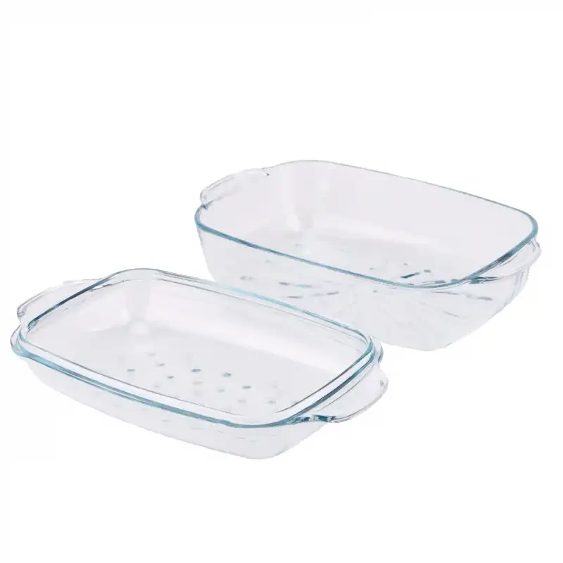 Hranatý sklenený pekáč s vekom 3,2 l + 2,3 l – borosilikátové sklo