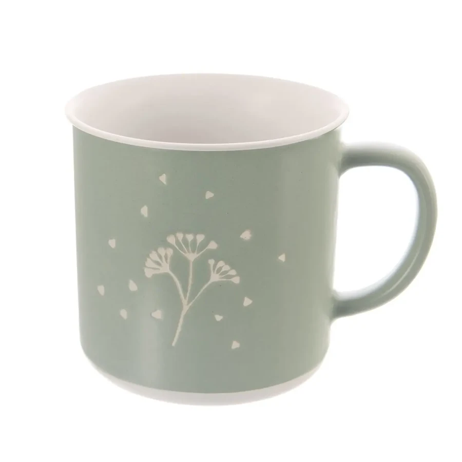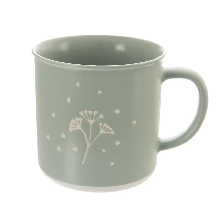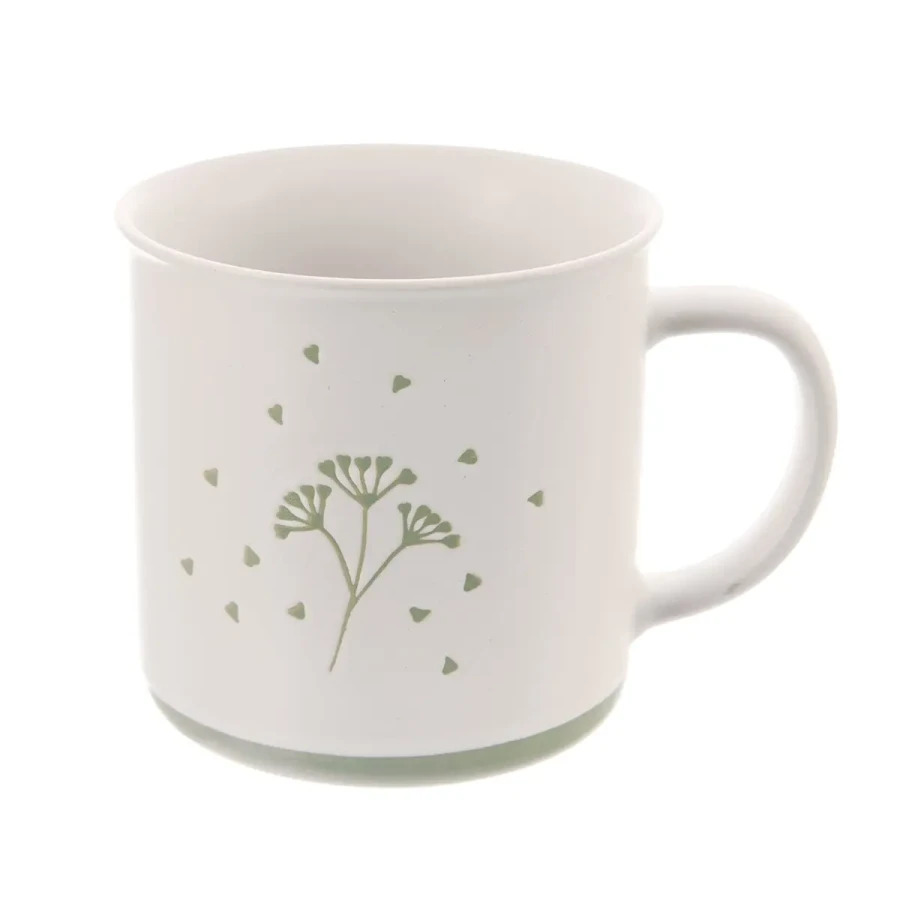 Hrnček s uchom s jemným dekórom GREENISH – Štýlový a svieži spoločník na každý deň