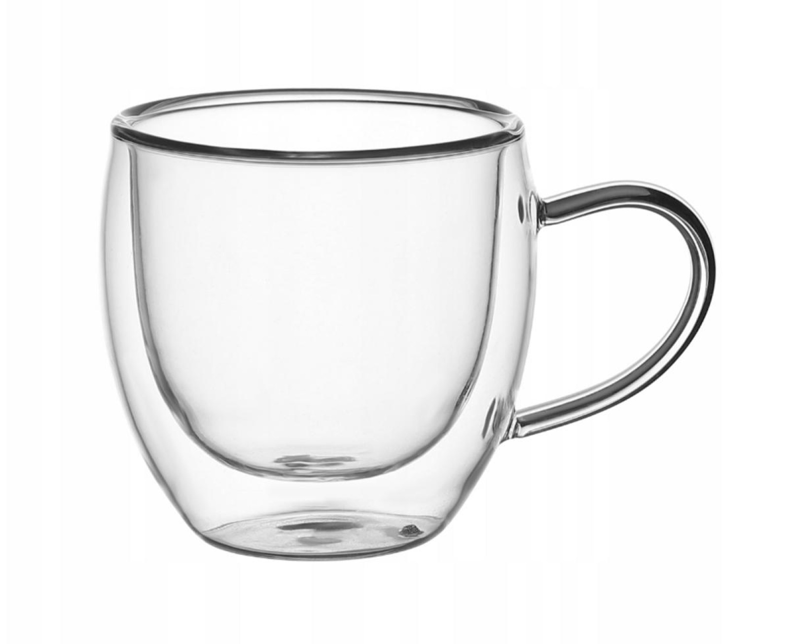 Hrnček sklo dvojstenny MIA 100ml s uškom, sada 2ks