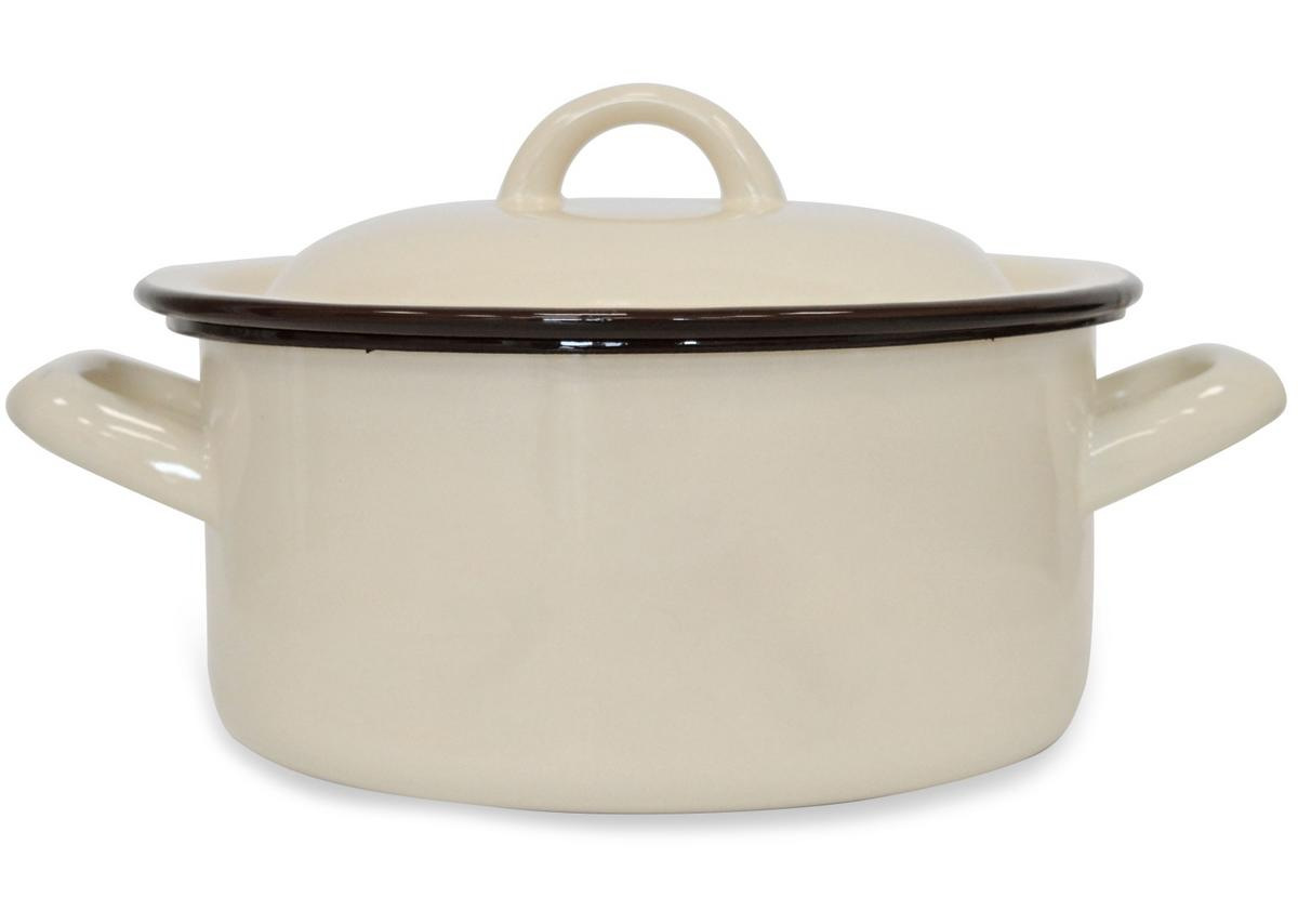 Smaltovaný kastról s pokrievkou v jemnom béžovom dizajne. Smalt nereaguje s potravinami, preto varenie v tomto hrnci nemení prirodzenú chuť a vôňu pokrmov. Je vhodný na všetky typy sporákov, vrátane indukcie. Prázdny kastról sa nikdy nesmie umiestňovať na zapnutý zdroj tepla. Je vhodný aj do umývačky riadu.