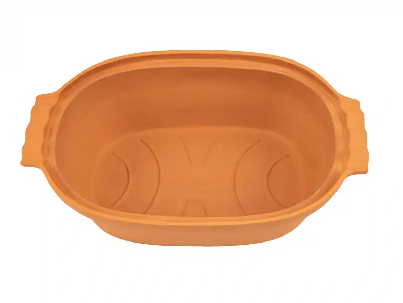 Je vyrobený z prírodnej neglazovanej keramiky, ktorá absorbuje vlhkosť a rovnomerne rozvádza teplo, vďaka čomu ostáva jedlo šťavnaté, mäkké a plné chuti.