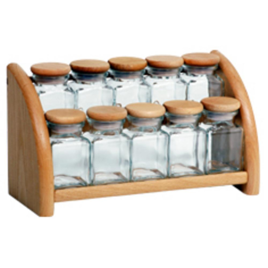 drevená polooblúková, závesná, dvojradová, 10 sklenenych nádob s dreveným vrchnákom s rozmermi 5x150 ml a 5x120 ml, 33x18cm
