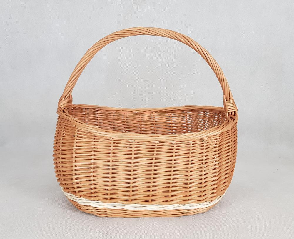 košík prútený, oválny, rozmery 40x24x15 cm, s rúčkou 35 cm