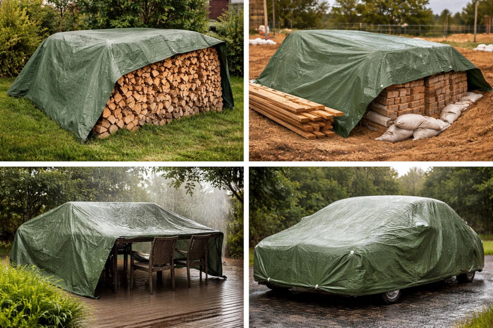 Táto ochranná plachta na zakrytie je ideálna pre drevo, záhradný nábytok, stavebný materiál, stroje aj vozidlá.