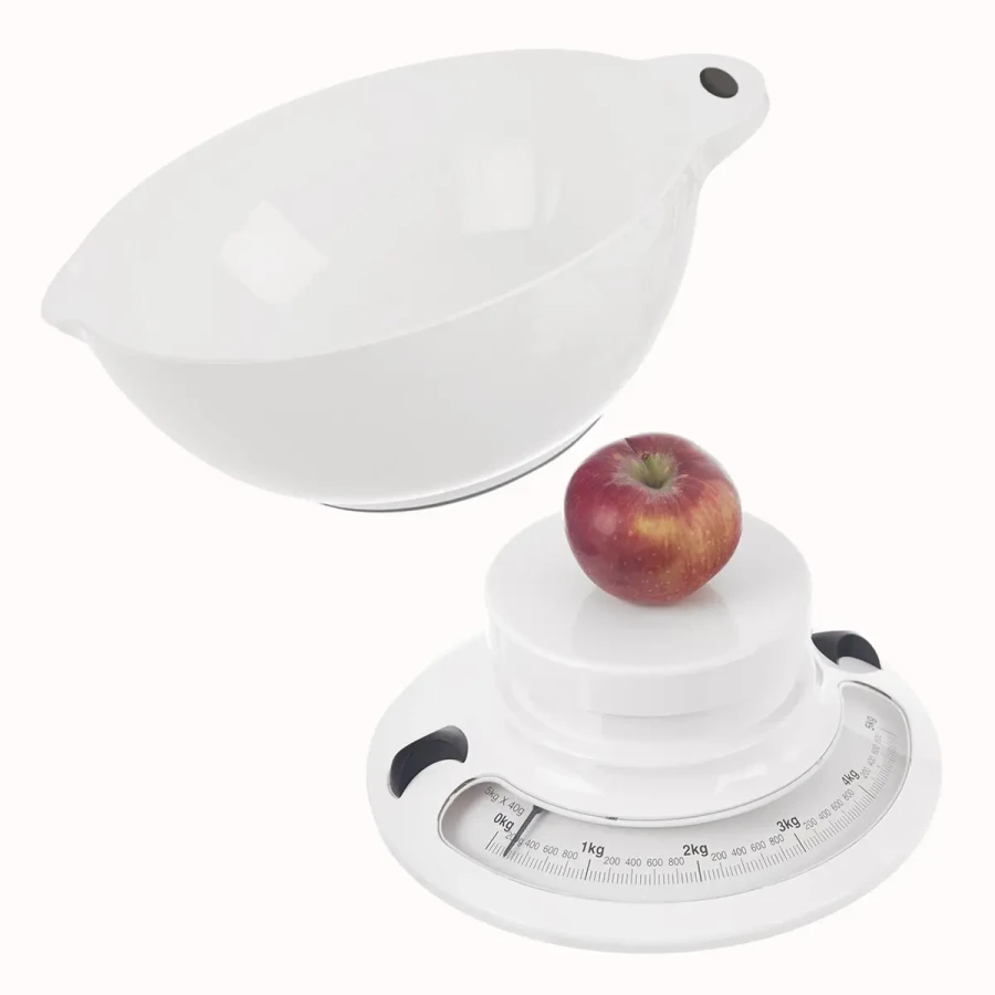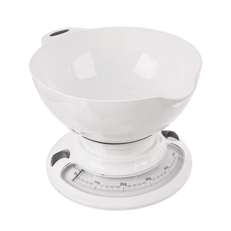 Mechanická kuchynská váha s odnímateľnou plastovou miskou s výlevkou je praktický a spoľahlivý pomocník do každej kuchyne.