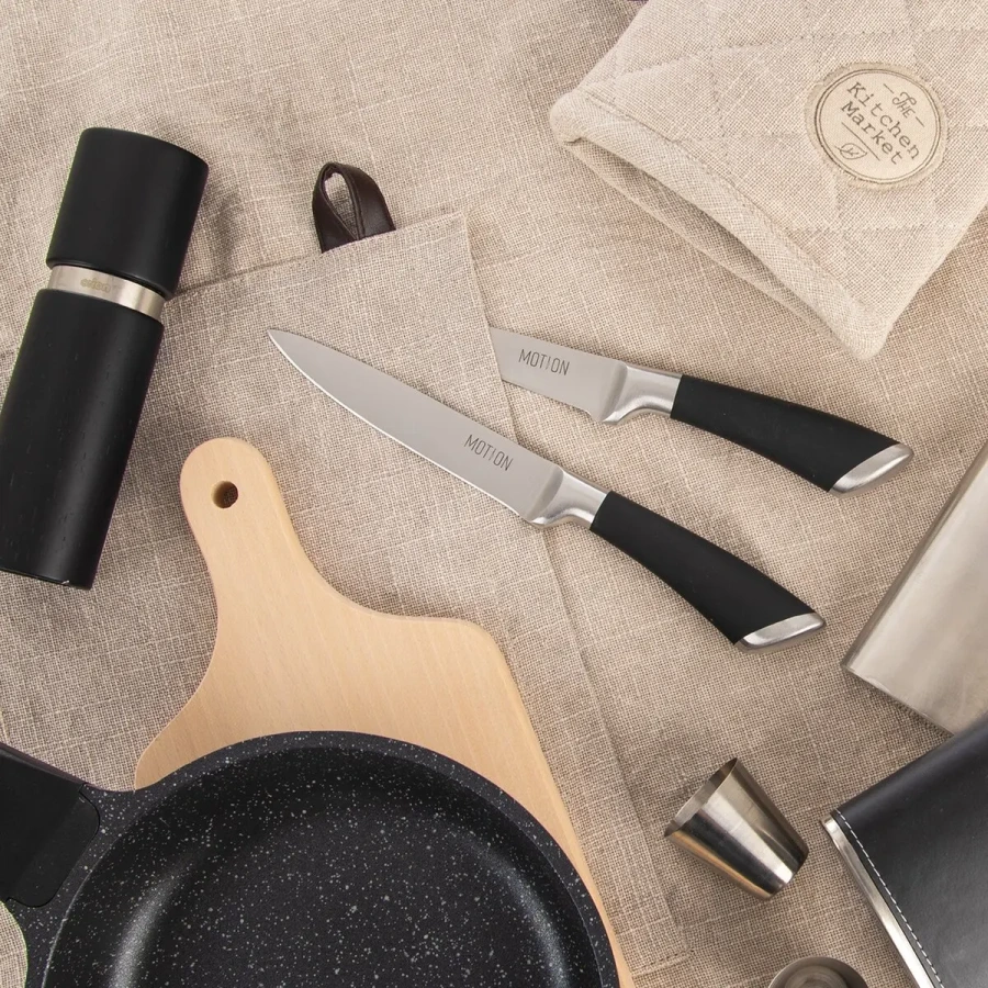 Súprava kuchynských nožov Motion – 3 ks je ideálnym pomocníkom do každej kuchyne, kde sa kladie dôraz na kvalitu, praktickosť a pohodlie pri varení.