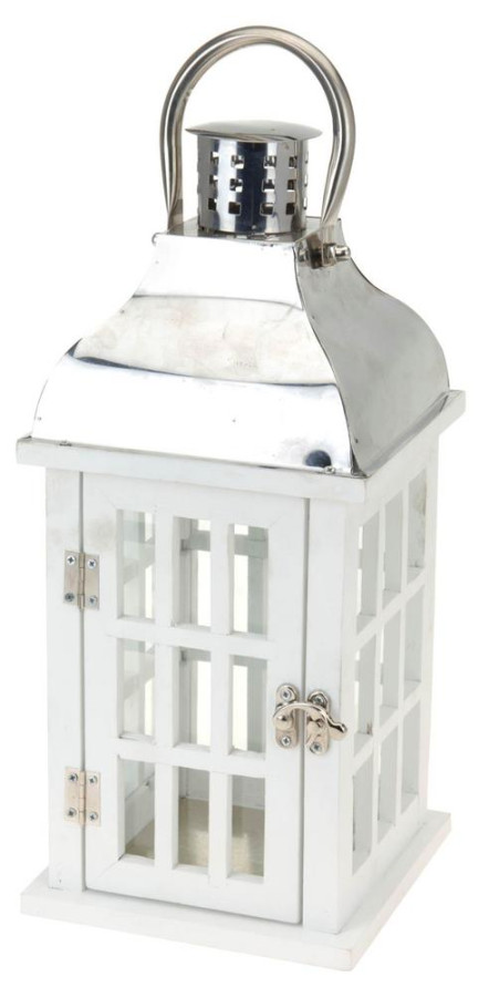 dekorácia lampáš, svietnik, materiál drevo/kov, rozmer 17x17x39 cm, s rúčkou výška 43 cm, biely
