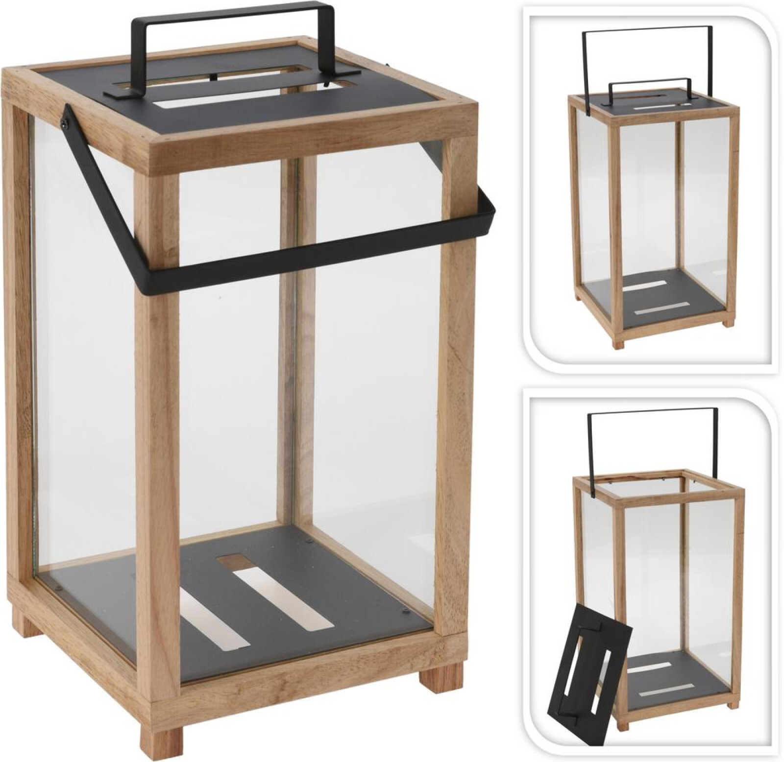 dekorácia lampáš, svietnik, materiál drevo/kov, sada 2 ks - malý 18x18x34 cm, veľký 22,5x22,5x43 cm
