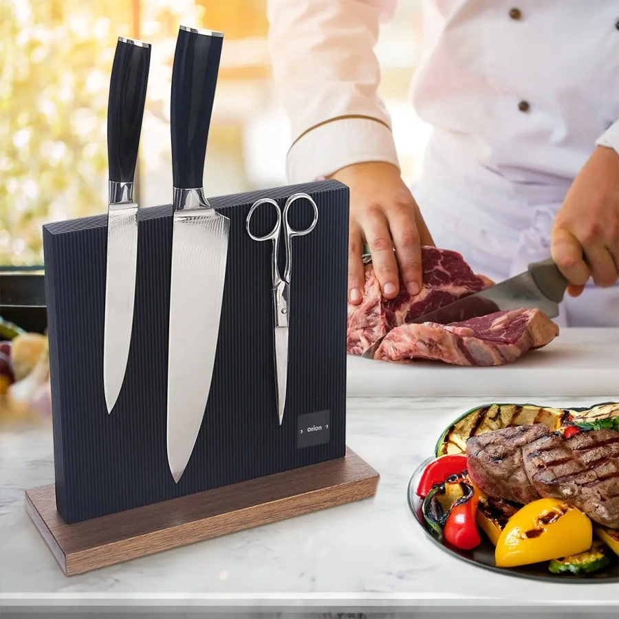 Tento magnetický obojstranný stojan na nože BLACK je kombináciou luxusného vzhľadu, extrémnej praktickosti a bezpečného uloženia vašich kuchynských nožov.
