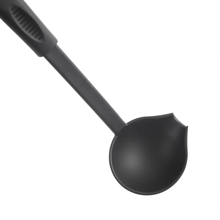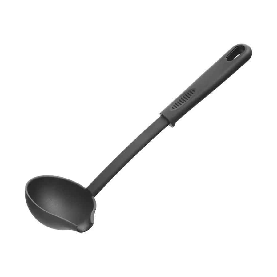 Táto BLACKLINE naberačka s výlevkou je nenahraditeľným pomocníkom pre všetkých, ktorí potrebujú presne naberať a čisto nalievať polievky, omáčky či tekuté zmesi – bez kvapiek mimo, bez špliechania a bez poškodenia nepriľnavého povrchu.