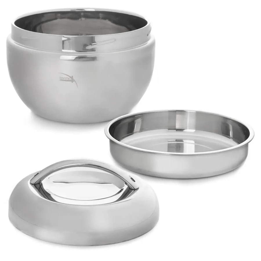 Praktická nerezová termomisa 1 l s uchom je navrhnutá tak, aby tvoje jedlá zostali dlho teplé alebo studené. Vďaka dvojitej stene udrží optimálnu teplotu polievok, omáčok, príloh či hlavných jedál. Súčasťou je aj vnútorná nerezová mištička, ktorá umožňuje oddelené uchovávanie rôznych druhov jedál.