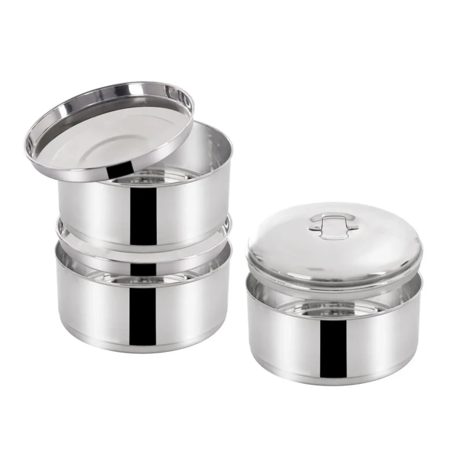 Celonerezový obedár 3×1,3 l s viečkami je moderným riešením pre každého, kto chce mať svoje jedlo uložené prakticky a bezpečne. Vďaka trom oddeleným miskám môžeš prenášať polievku, hlavné jedlo aj dezert – všetko na jednom mieste.