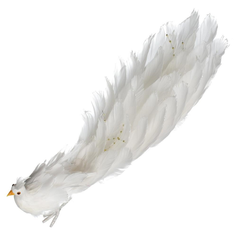 ozdoba páv, chvost z peria, rozmery 40x14x15cm, farba biela