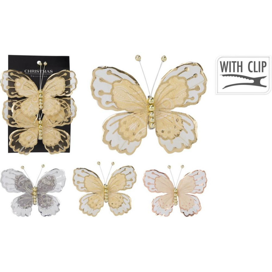 ozdoba s klipom, motýľ, sada 2 ks, rozmery 13x9x1,5 cm, materiál polyester, mix