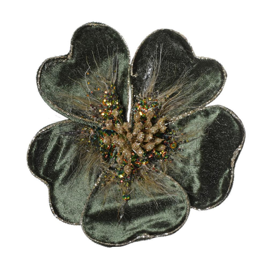 Ozdoba s klipom vianočný kvet 14cm zelená
