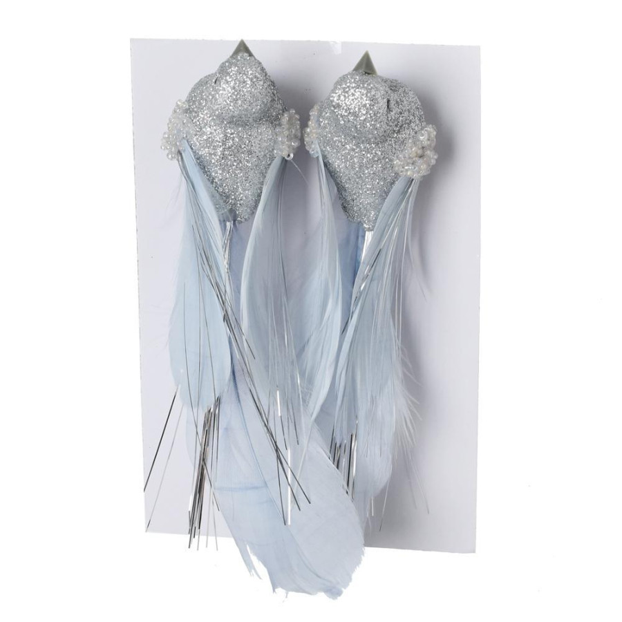 Ozdoba s klipom vtáčik 13cm sada 2ks perie sivý
