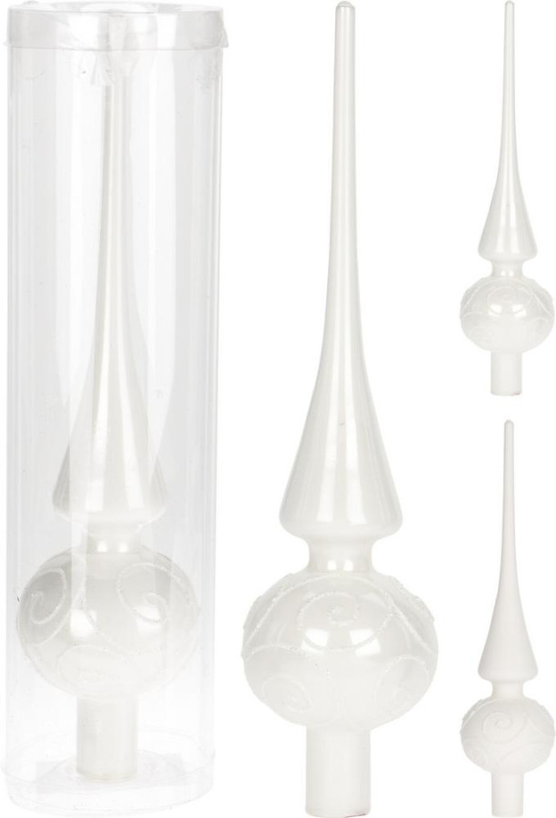 ozdoba špic na vianočný stromček, materiál sklo, výška 25 cm, biely, mix