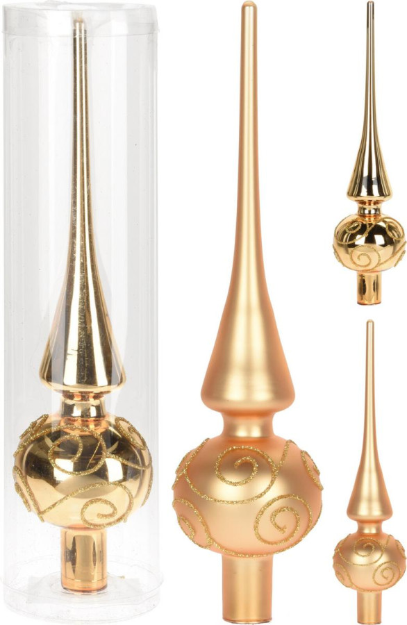 ozdoba špic na vianočný stromček, materiál sklo, výška 25 cm, zlatý, mix