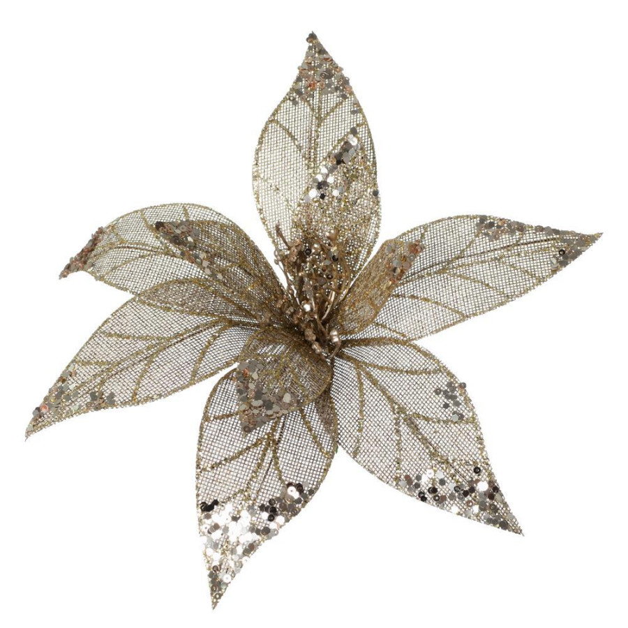 ozdoba vianočná ruža, rozmery 24x24x8cm, farba zlatá šampaň s trblietkami