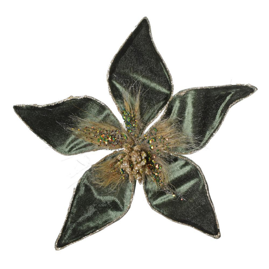 Ozdoba vianočná ruža na klipe 20cm zelená zamat