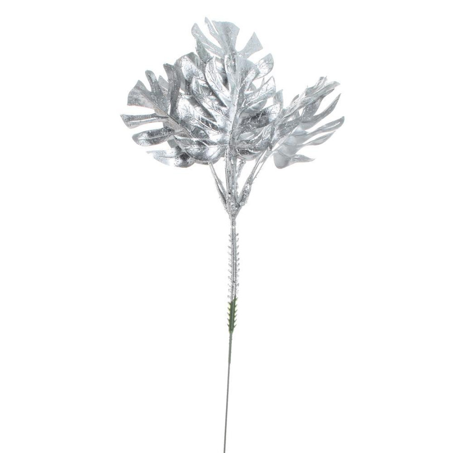 Ozdoba zapichovacia monstera listy 24cm strieborná