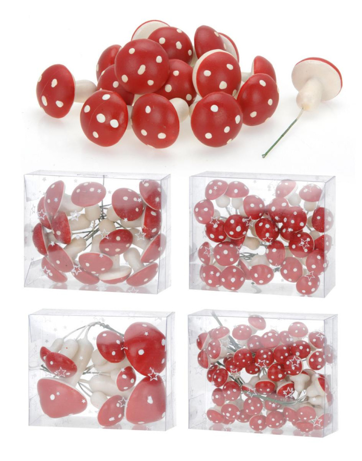 zapichovacia ozdoba, dekorácia, muchotrávka, mix veľkostí a balení - sada 9 ks 2,4/4/7,5 cm, sada 16 ks 4 cm, sada 30 ks 2,5 cm, sada 60 ks 2 cm