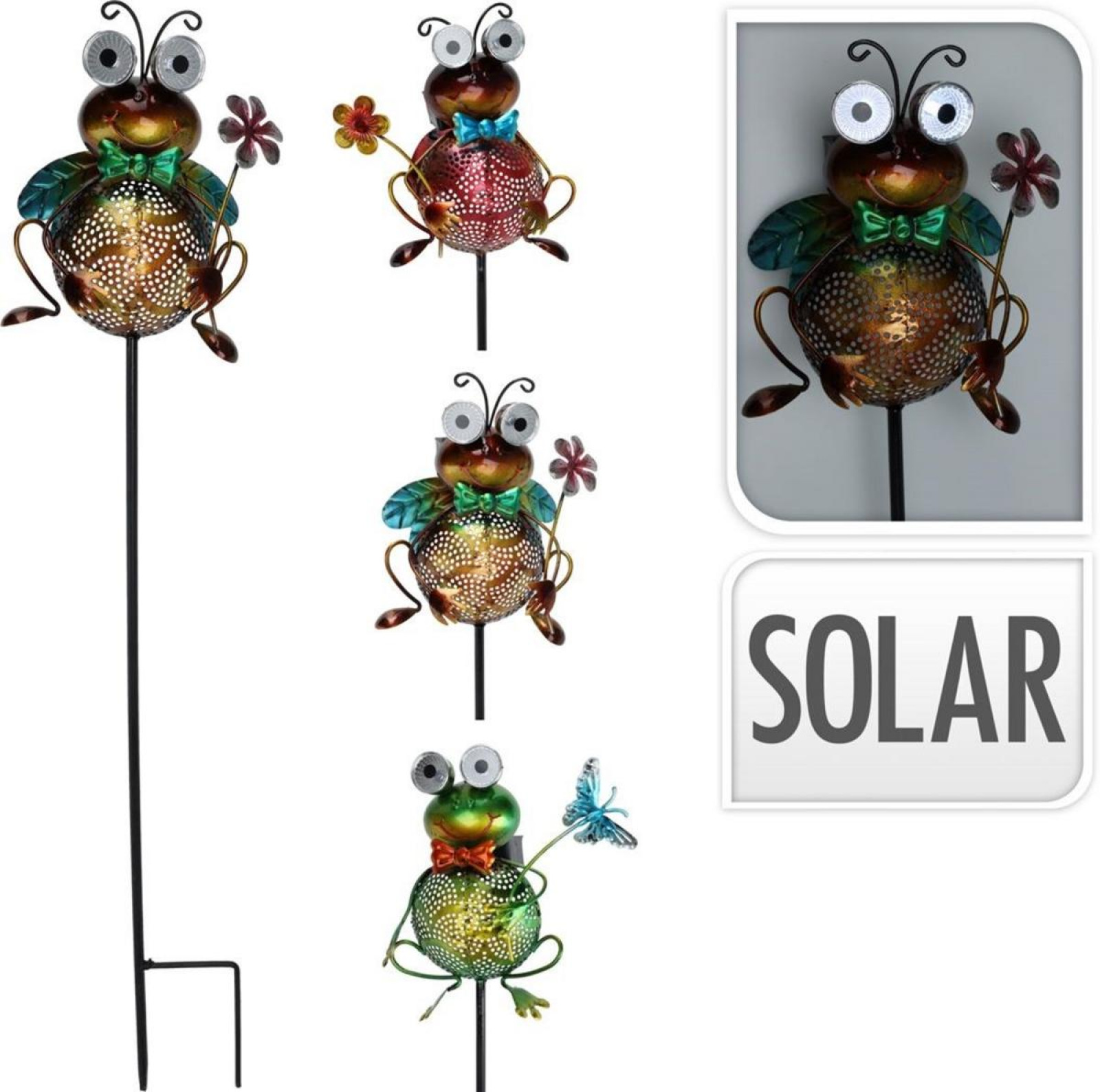 zapichovacia ozdoba, dekorácia, zvieratko, so solárnymi očami, materiál kov, rozmer 15x7,5x60 cm, mix
