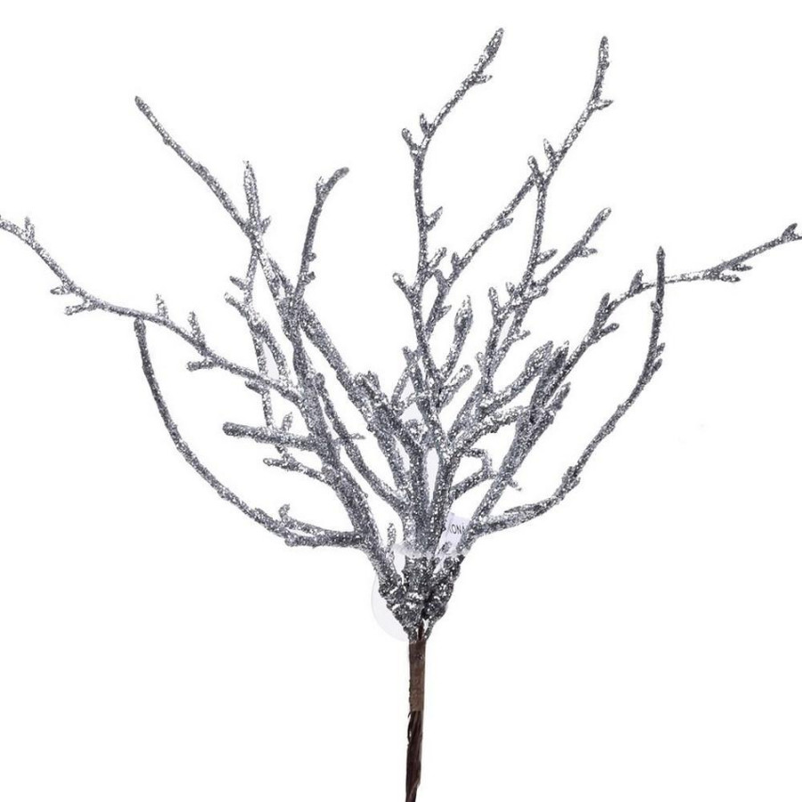 ozdoba zapichovacia vetvička, rozmer 22cm, farba strieborná s trblietkami
