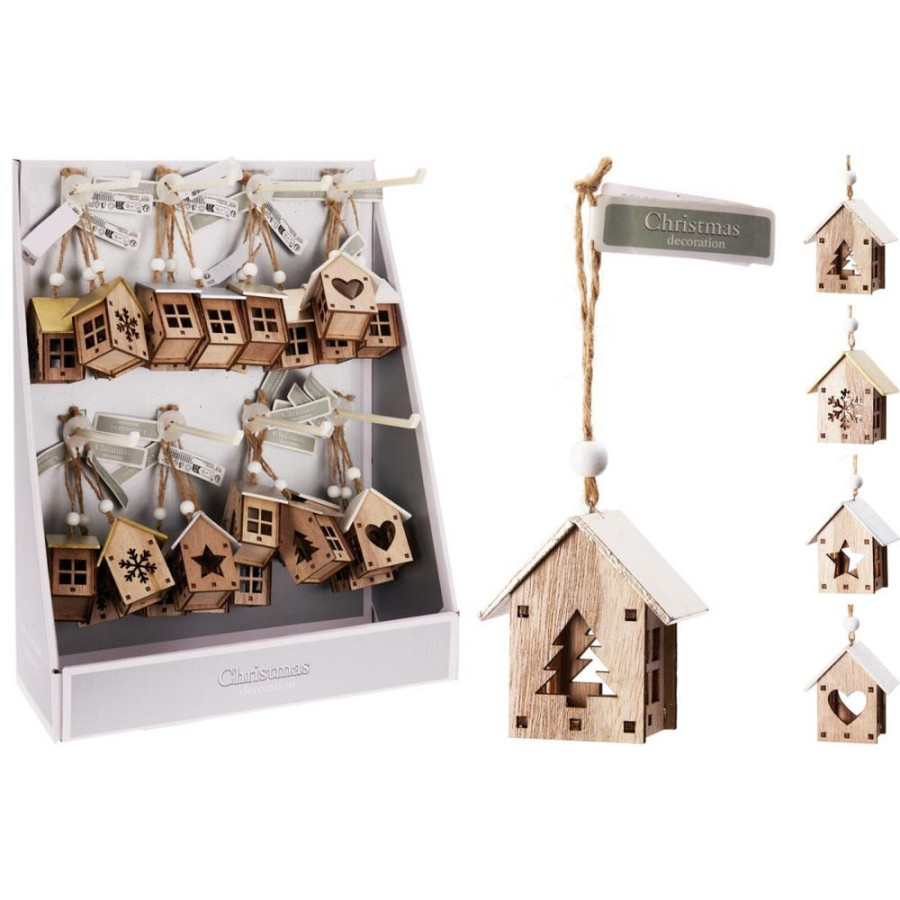 Ozdoba závesná domček 16x5 cm drevo mix