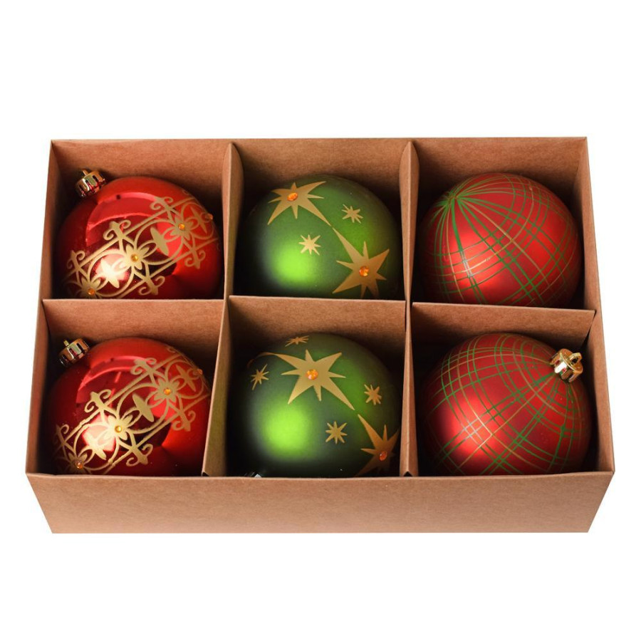 ozdoba závesná guľa, sada 6ks, materiál plast, rozmer 10cm, farba mix červeno-zelená