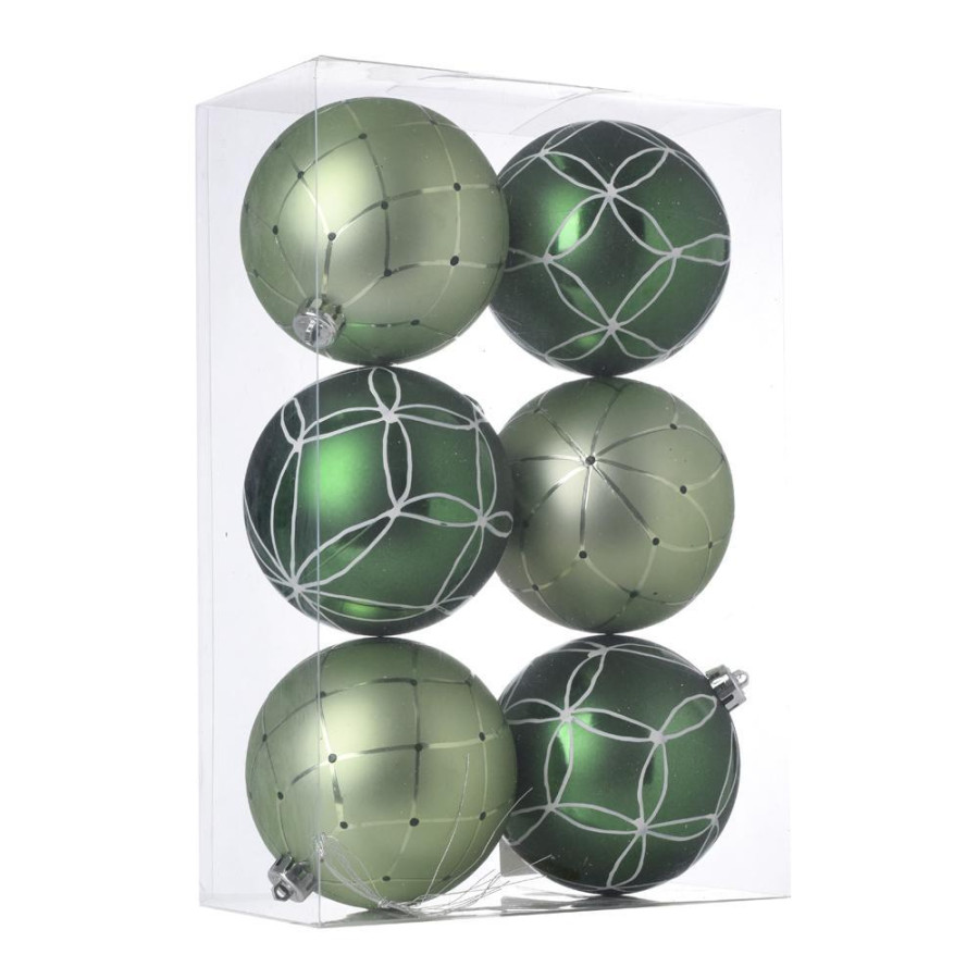 ozdoba závesná guľa, sada 6ks, materiál plast, rozmer 10cm, farba zelená mix