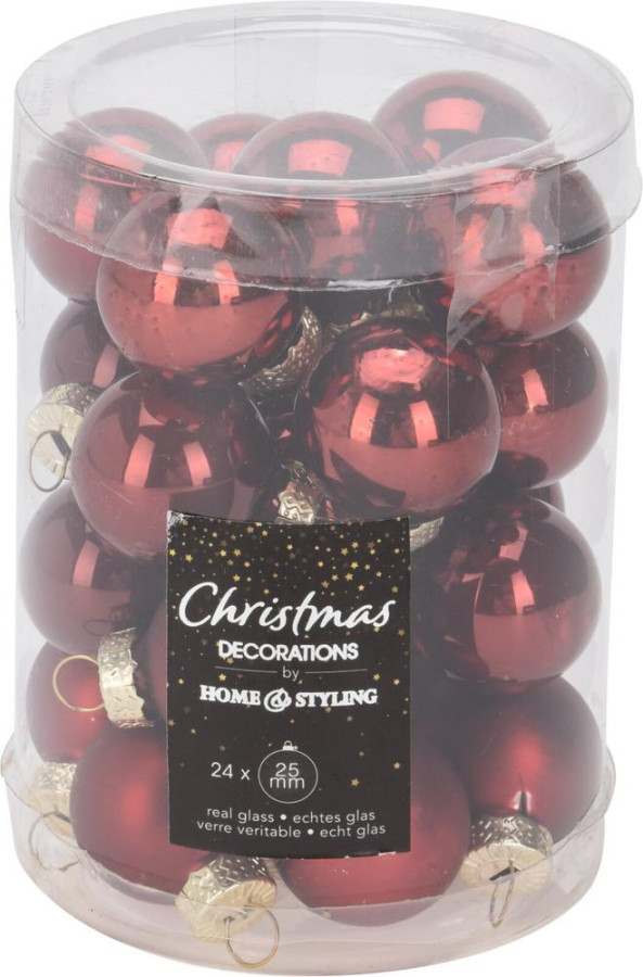 ozdoba závesná guľa, sada 24ks, priemer 2,5cm, materiál sklo, farba bordová