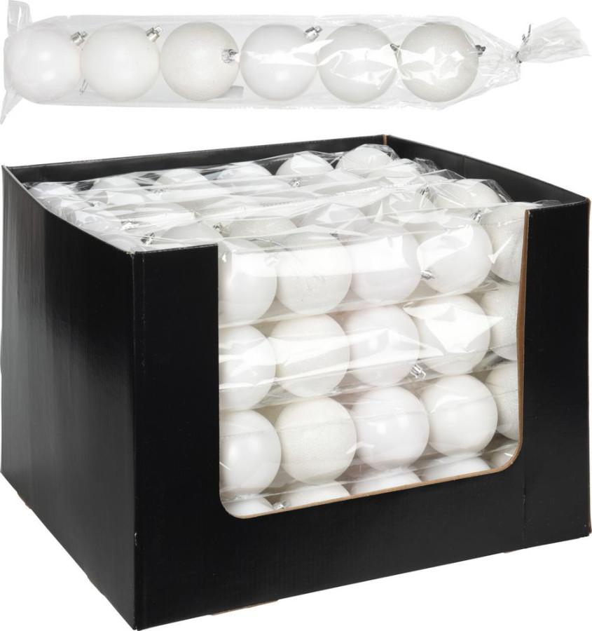 Ozdoba závesná guľa 7 cm sada 6 ks plast biela