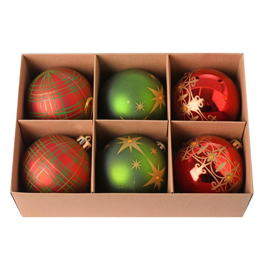 ozdoba závesná guľa, sada 6ks, materiál plast, rozmer 8cm, farba mix červeno-zelená