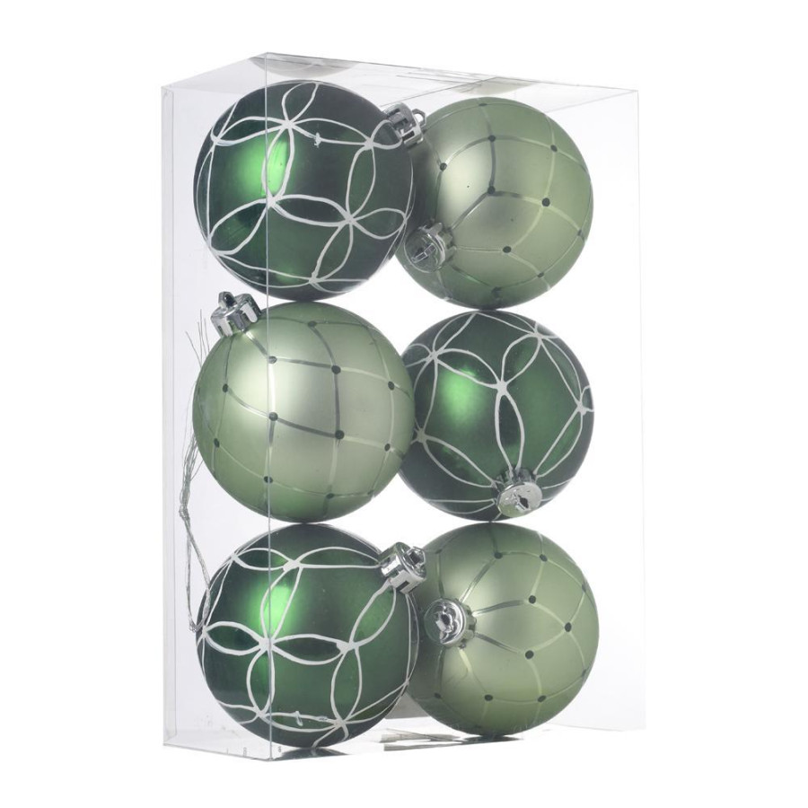 ozdoba závesná guľa, sada 6ks, materiál plast, rozmer 8cm, farba zelená mix